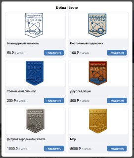 3️⃣ В-третьих, в ВК тоже есть возможность задонатить, причем вот с такими вот уровнями и милыми званиями, как на картинке – ссылка